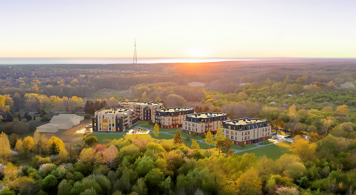 Erdvios terasos leidžia mėgautis tyla, grynu oru ir ramiais saulėlydžiais – tarsi nuosava poilsio erdvė namuose. Aukšta energinė klasė, požeminis parkingas, elektromobilių įkrovimas, vidiniai kiemai bei takai pėstiesiems ir dviratininkams – visa tai kuria patogų, tvarų ir kokybišką gyvenimą tarp miesto, miško ir jūros.