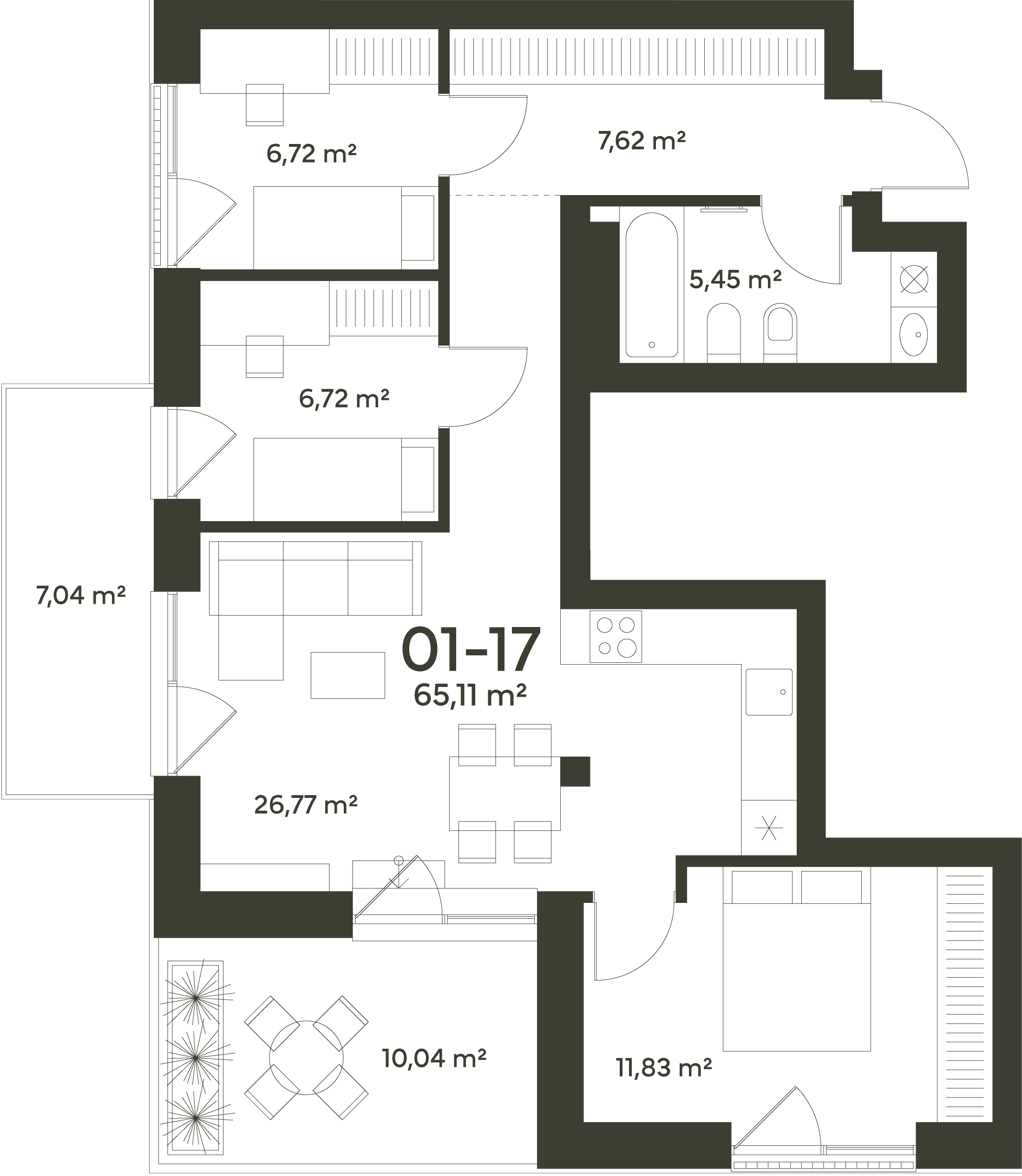 Panoraminis vaizdas, Balkonas (7,04 m²), Terasa (10,04 m²)
