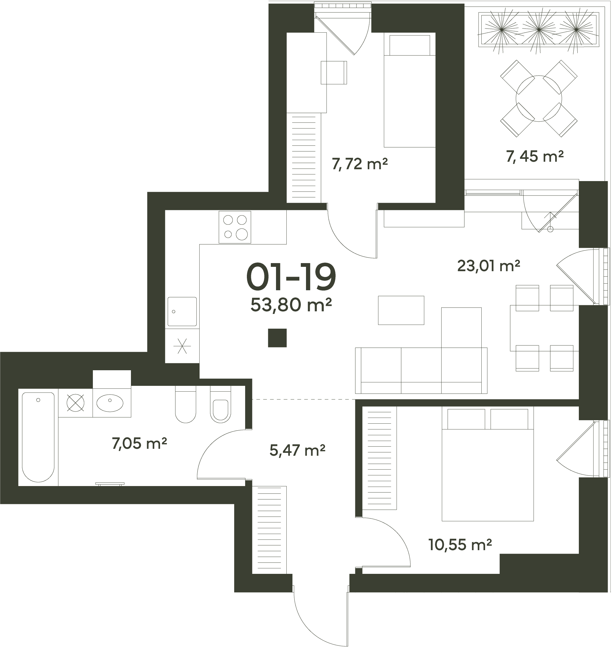 53,80 m²