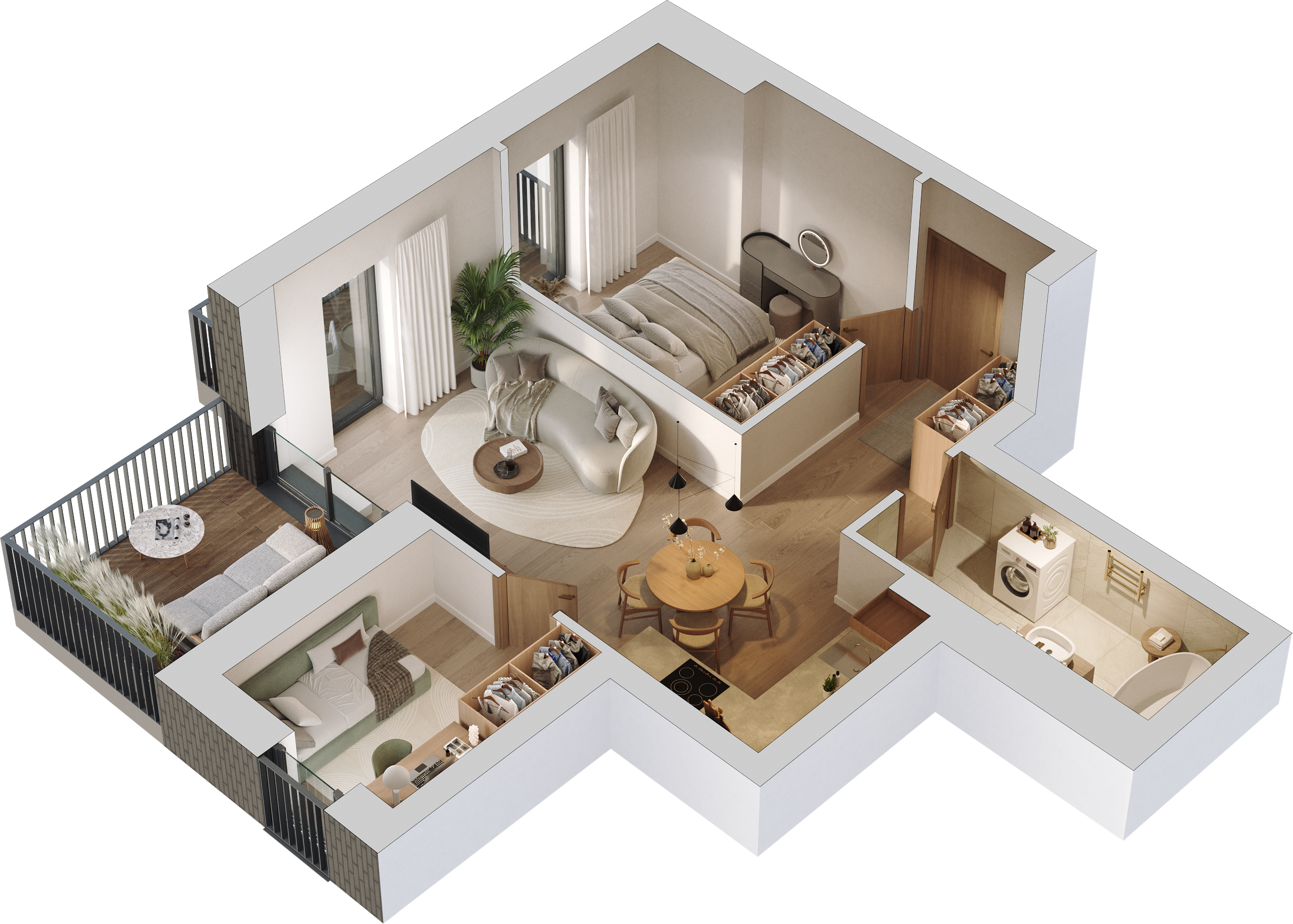Panoraminis vaizdas, Balkonas (7,04 m²), Terasa (7,45 m²)