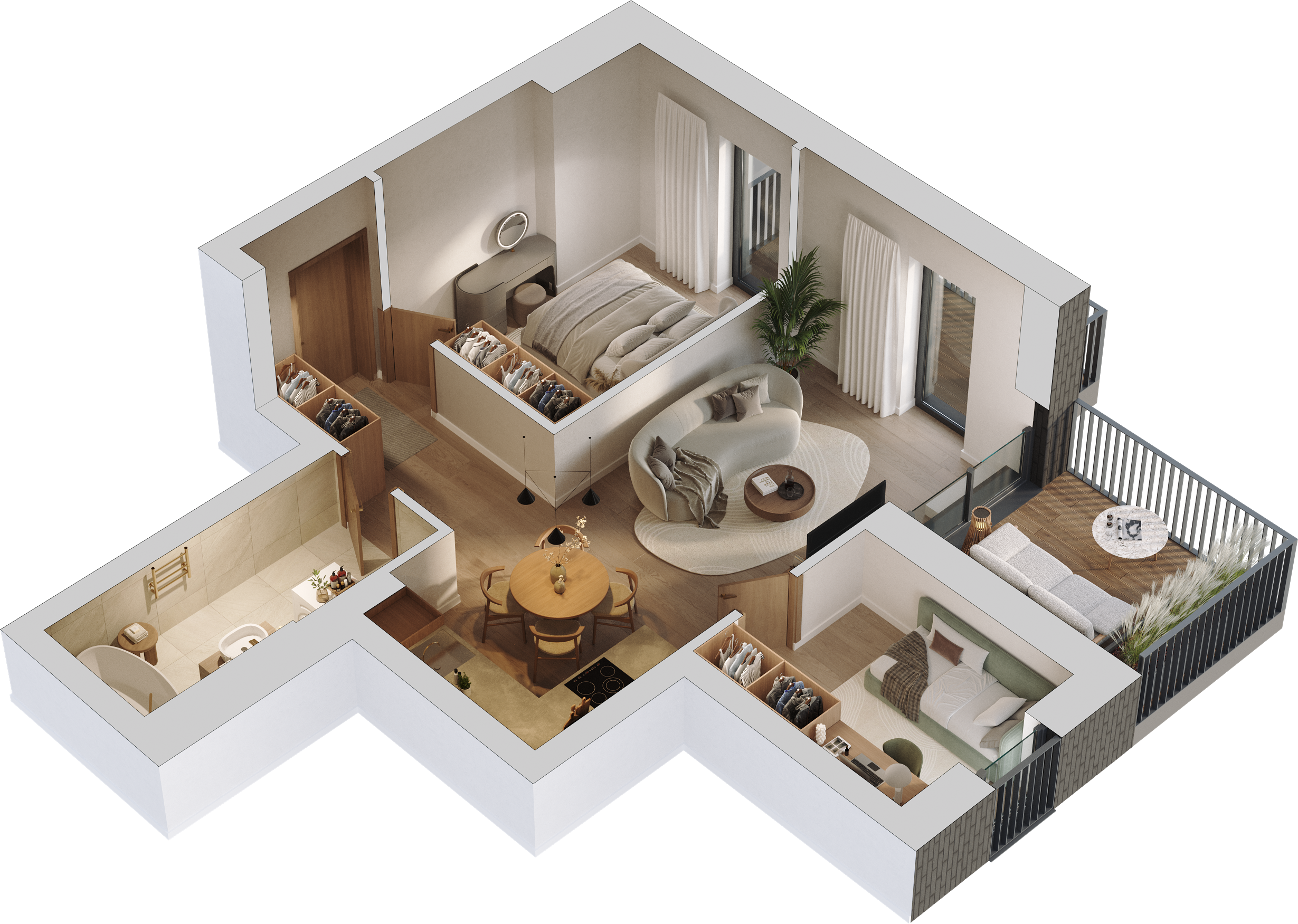 Panoraminis vaizdas, Balkonas (7,04 m²), Terasa (7,45 m²)