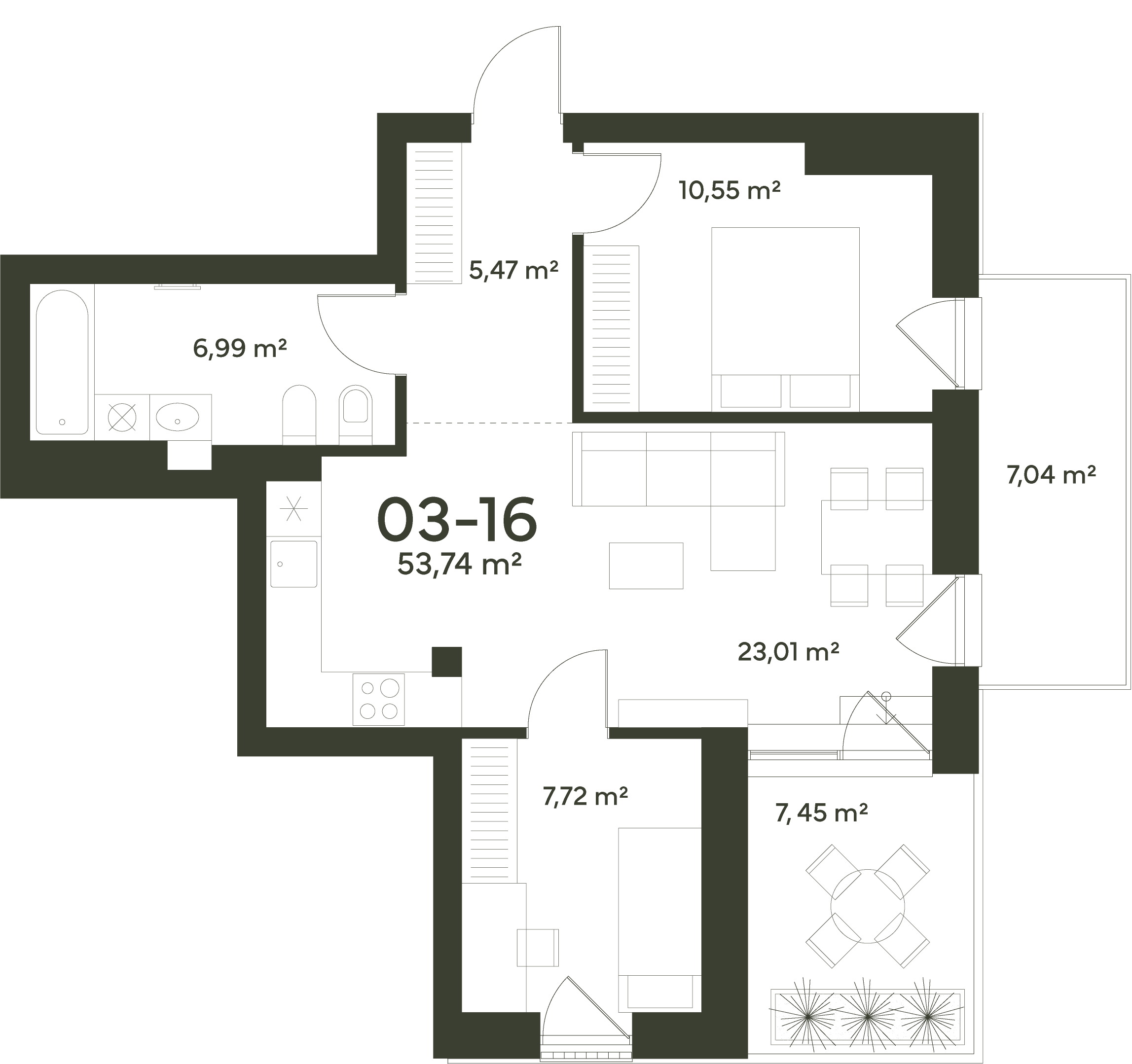 53,74 m²