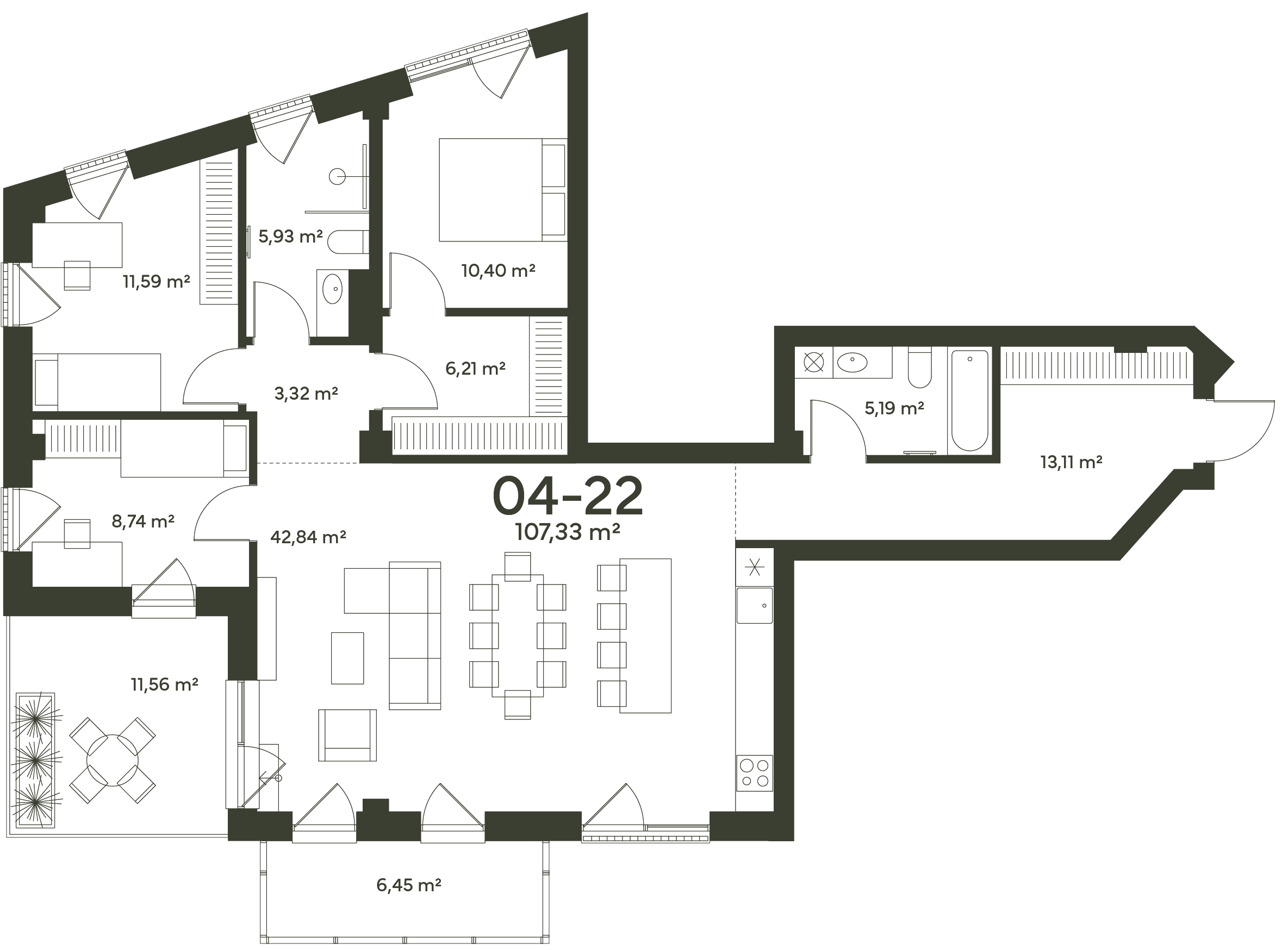 Panoraminis vaizdas, Balkonas (6,45 m²), Terasa (11,56 m²)